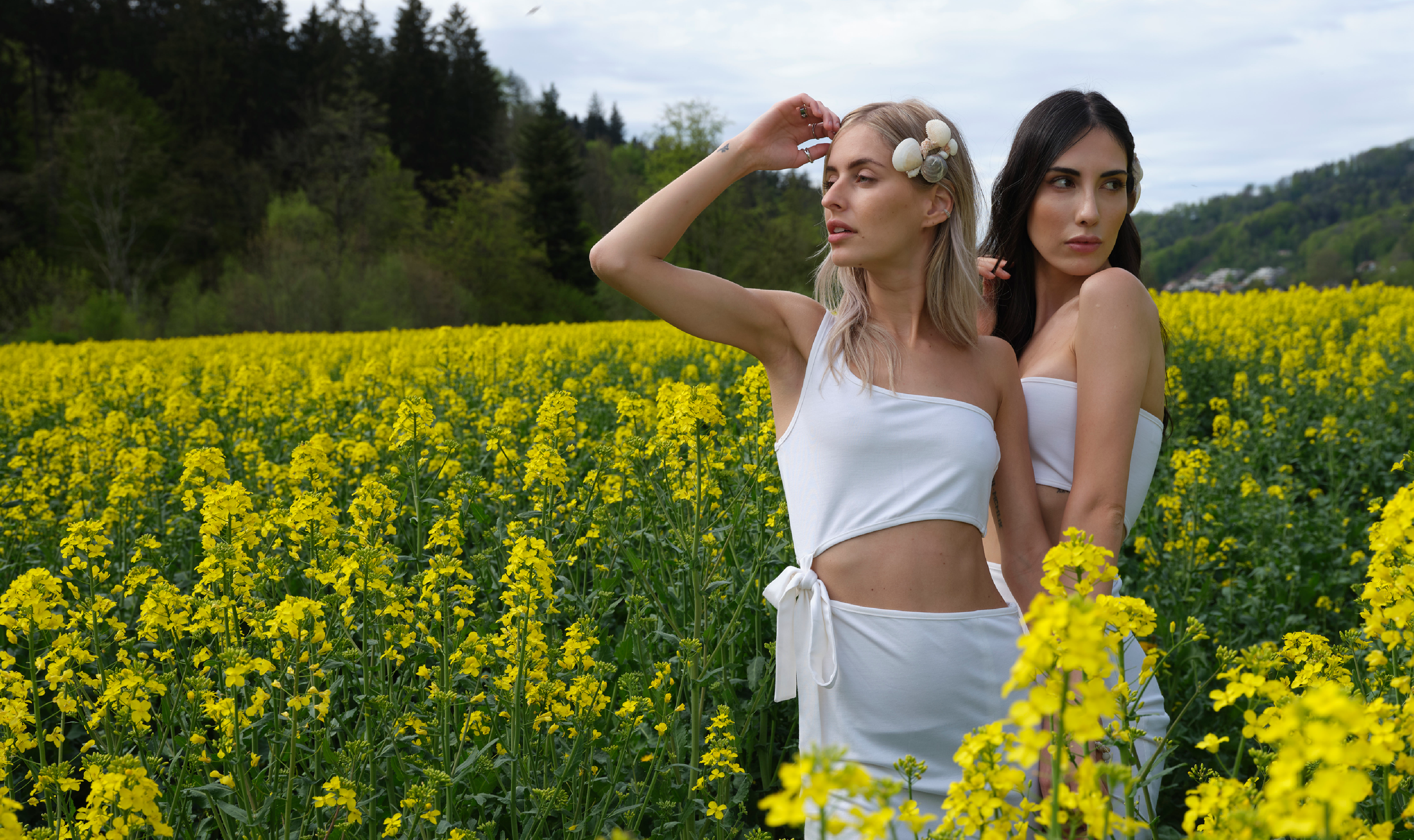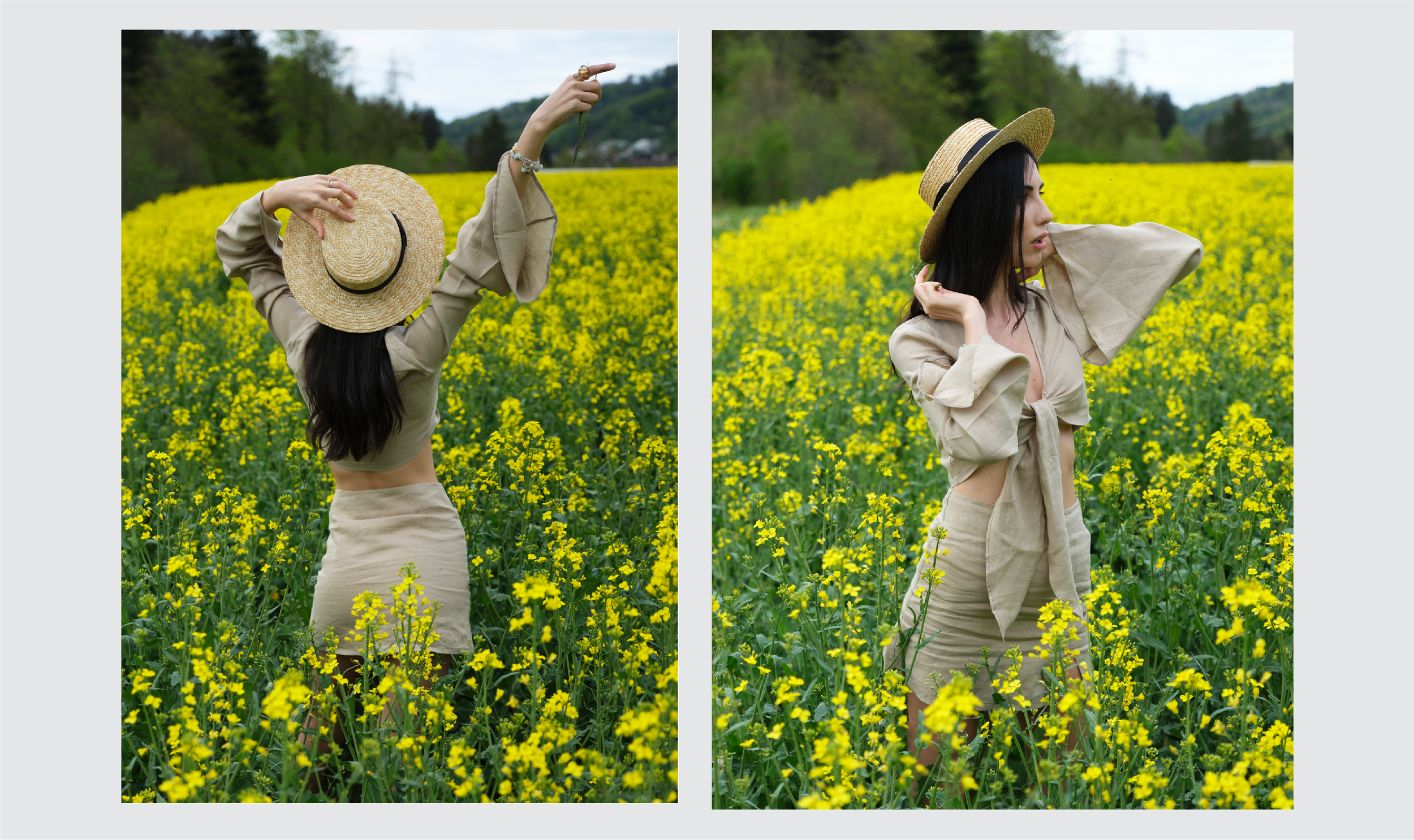 Crafted from 100% organic, certified vegan fabrics produced in Turkey and carrying GRS and V-Label certifications, the collection reflects a commitment to cruelty-free, responsible luxury. Light, fluid silhouettes evoke romance, purity, and the delicate beauty of nature.